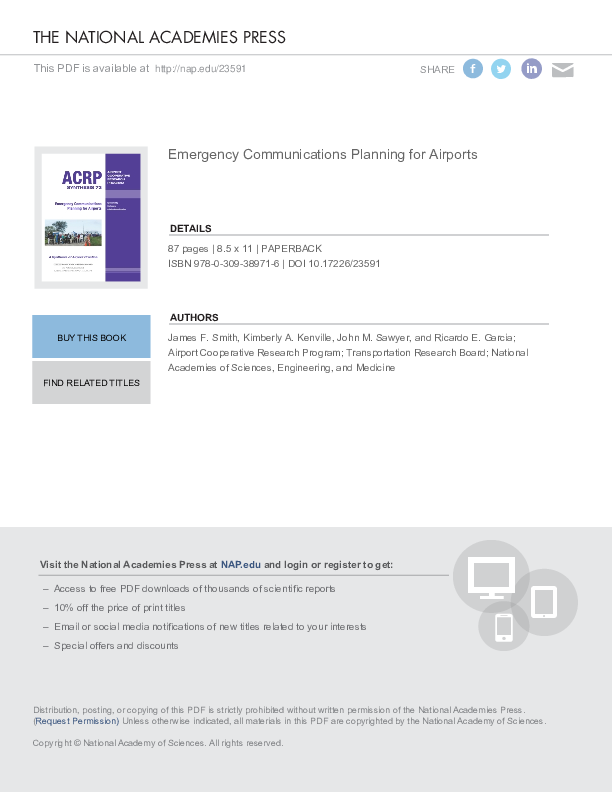 The focus of this report is on emergency communications planning that can be used by airports of any type or size. It is specifically designed for use by airport senior management, public information officers (PIOs), and first responders and emergency managers.