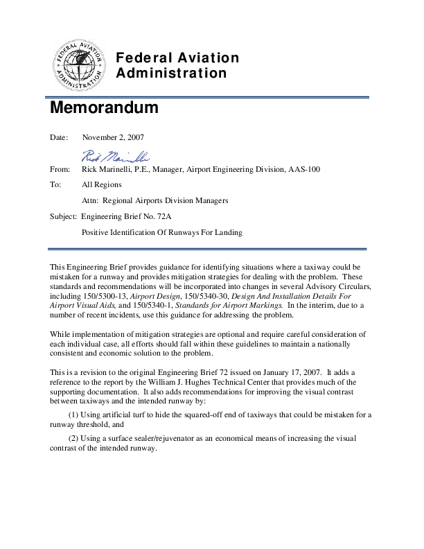 Engineering Brief No. 72A Positive Identification Of Runways For Landing