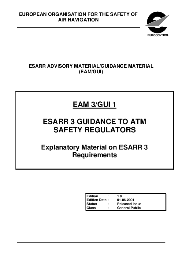 ESARR 3 Guidance to ATM Safety Regulators - Explanatory Material on ESARR 3 Requirements