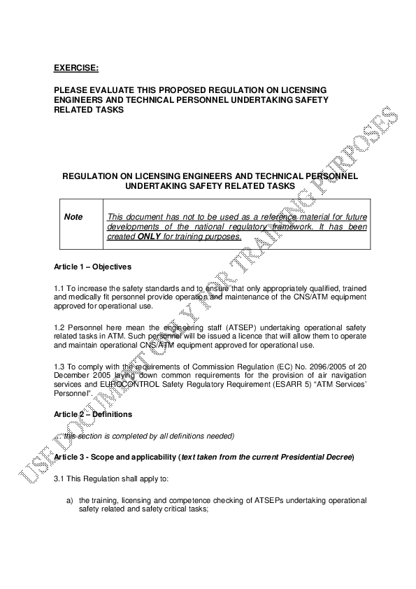 This document consists of an exercise related to regulation on licensing engineers and technical personnel undertaking safety related risks.