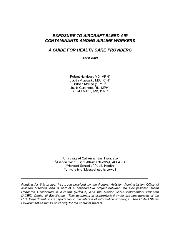 FAA funded project giving guidance to health care workers regarding effects of contaminated bleed air in cabin