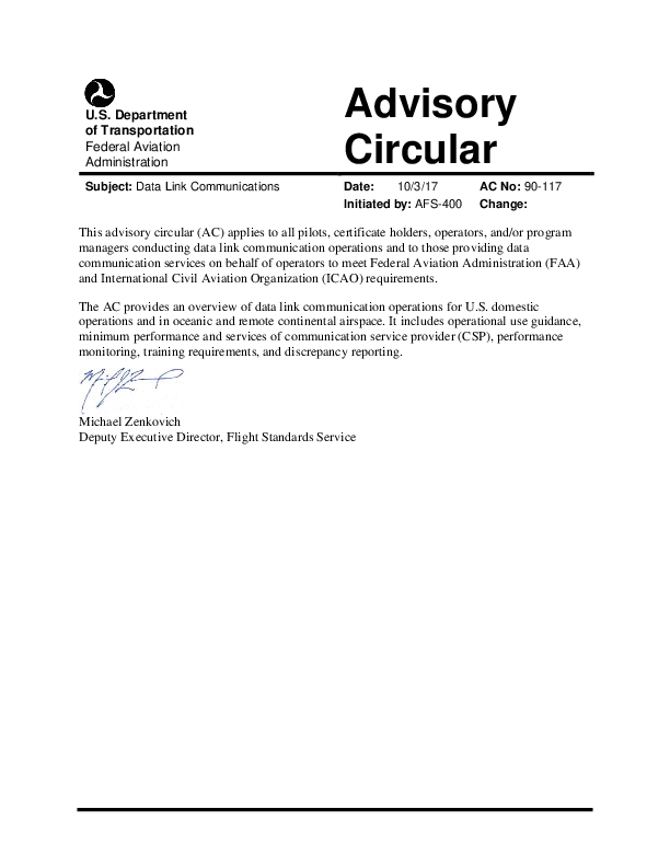 FAA AC 90-117: Data Link Communications