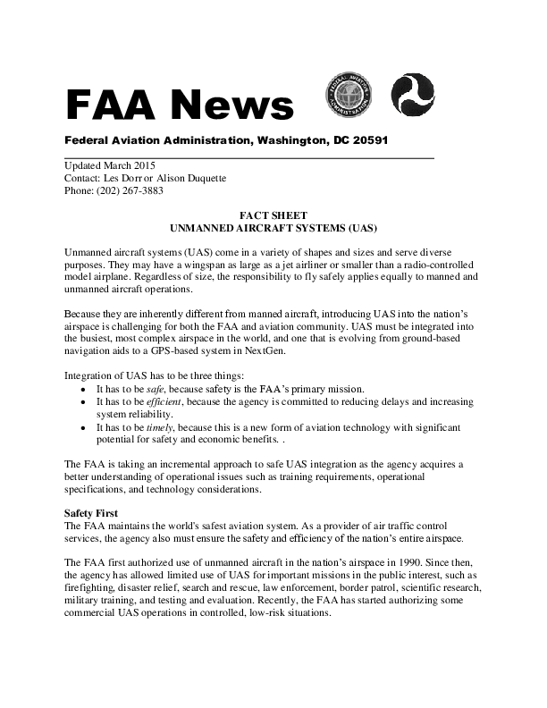 FAA Fact Sheet - Unmanned Aircraft Systems