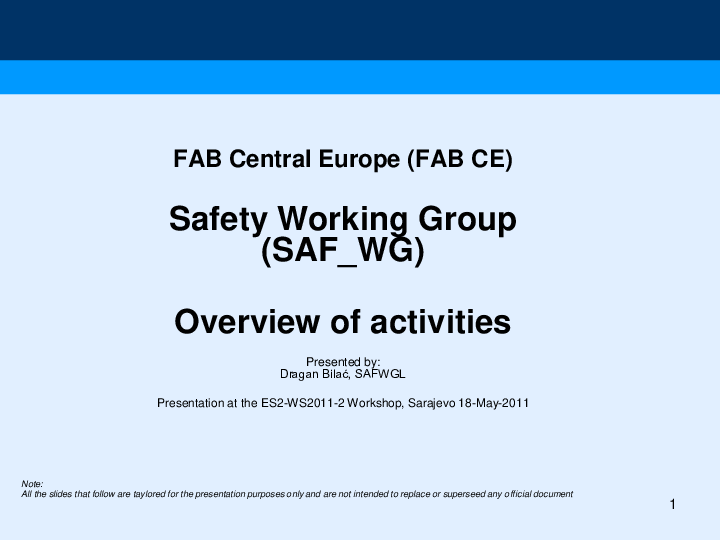 FAB Central Europe: Safety Working Group - Overview of Activities