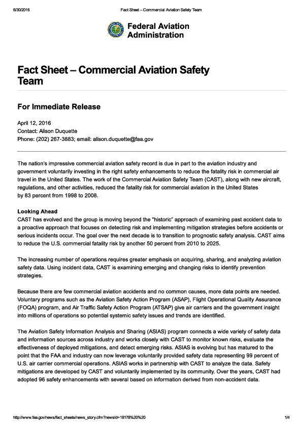 Fact Sheet - Commercial Aviation Safety Team (CAST)