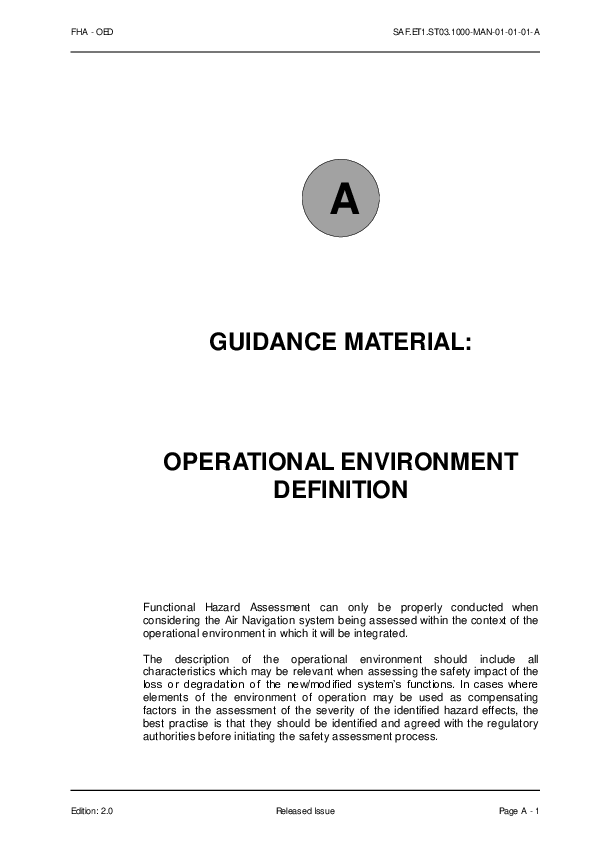 FHA V2-0 Chapter 1 GUIDANCE A – Operational Environment Definition