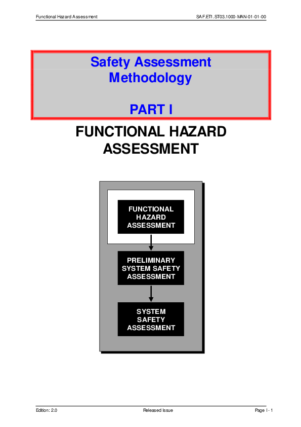 This document introduces the objectives of a Functional Hazard Assessment (FHA) as well as the various steps which constitute the FHA. These steps are described in subsequent documents. The main objectives of the FHA are to identify hazards, to assess the consequences of their occurrences on the safety of operations and to set- their maximum acceptable frequency of occurrence (Safety Objectives).