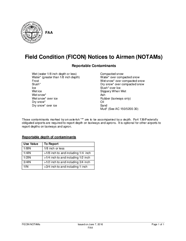 FICON NOTAM: Reportable Contaminants