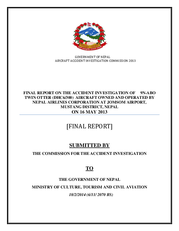 Final Report 9N-ABO Twin Otter (DHC6/300) Aircraft At Jomsom Airport Nepal 16 May 2013