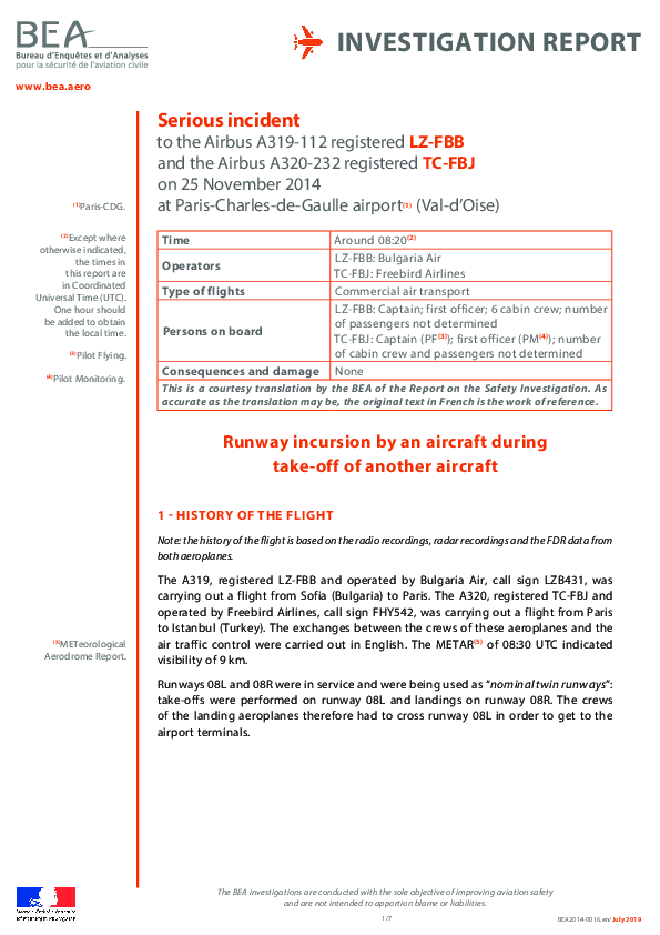 Final Report A319 (LZ-FBB) & A320 (TC-FBJ), Paris CDG France, 25 Nov 2014