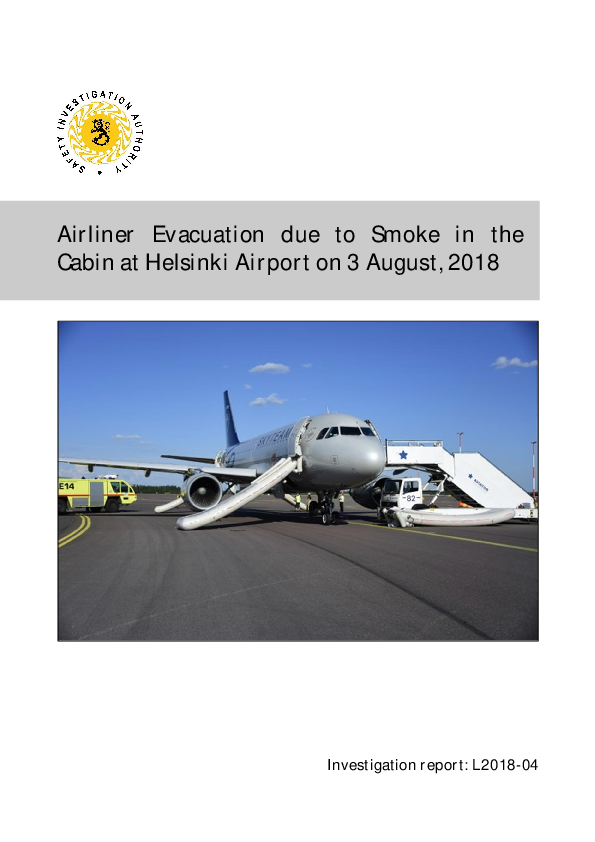 On 3 August 2018, smoke appeared and began to intensify in the passenger cabin but not the flight deck of an Airbus A319 taxiing for departure at Helsinki. Cabin crew notified the Captain who stopped the aircraft and sanctioned an emergency evacuation. This then commenced whilst the engines were still running and inadequate instructions to passengers resulted in a completely disorderly evacuation. The Investigation attributed this to inadequate crew procedures which only envisaged an evacuation ordered by the Captain for reasons they were directly aware of and not a situation where the evacuation need was only obvious in the cabin.
