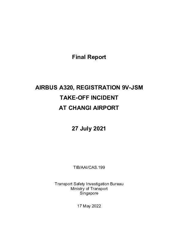 Final Report A320 (9V-JSM), Singapore Changi Singapore, 27 July 2021