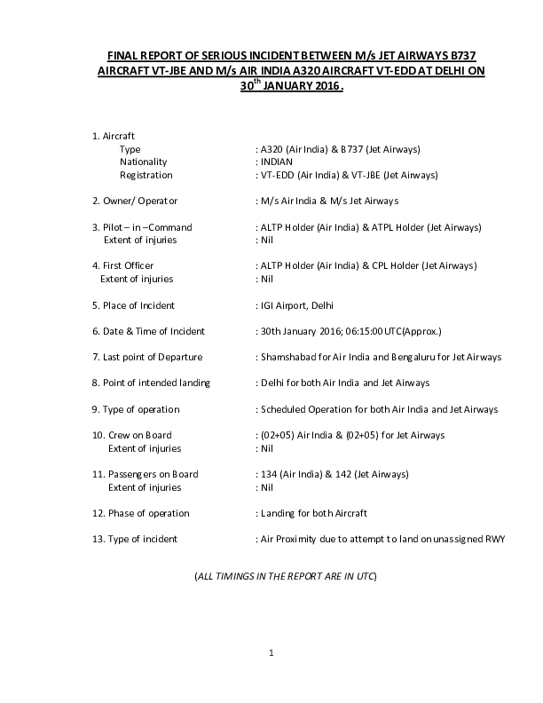 Final Report A320 B738 LOS vicinity Delhi India, 30 Jan 2016