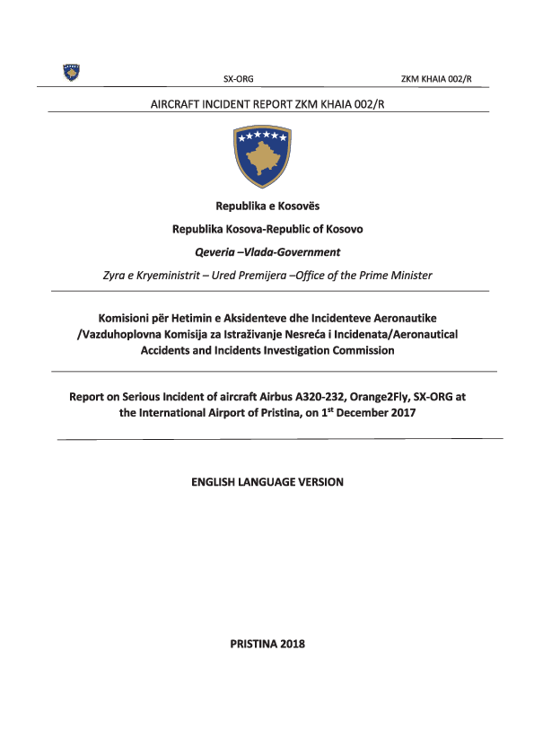 Final Report A320 (SX-ORG) Pristina Kosovo, 1 Dec 2017