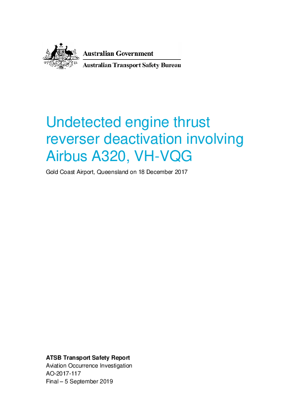 Final Report A320 (VH-VQG) Gold Coast QLD Australia, 18 Dec 2017