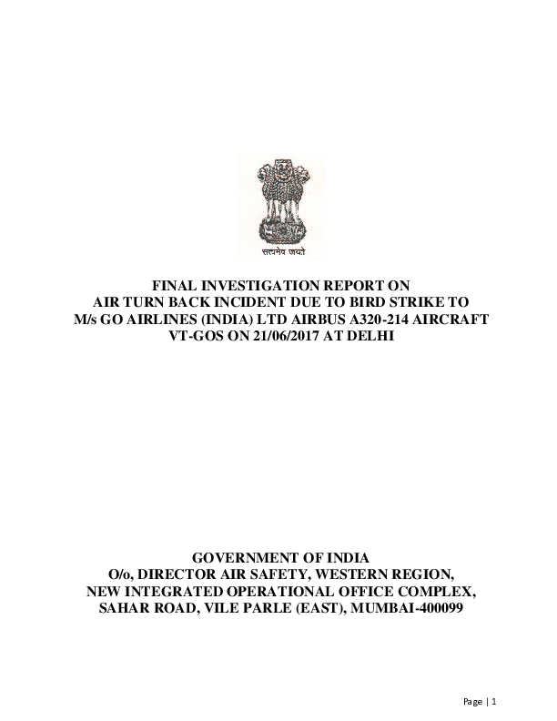 Final Report A320 (VT-GOS), vicinity Delhi India, 21 June 2017