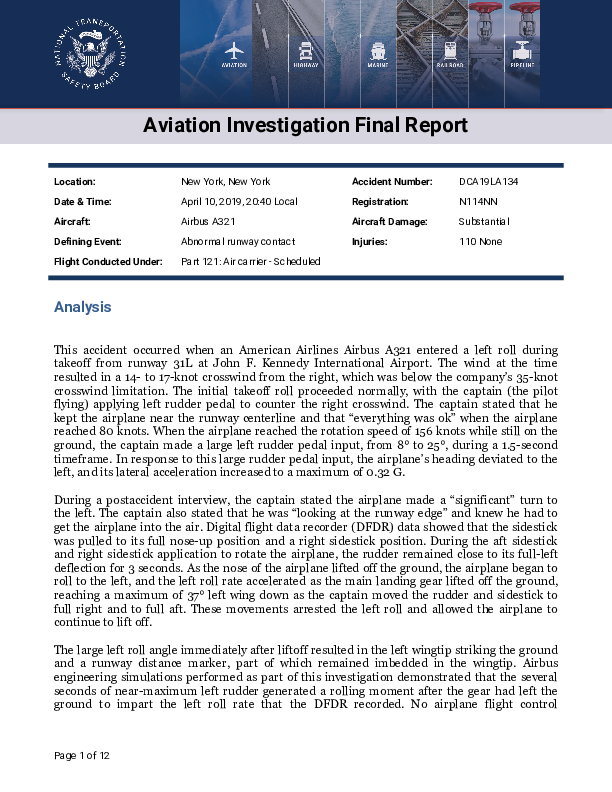 Final Report A321 (N114NN), New York JFK USA, 10 April 2019
