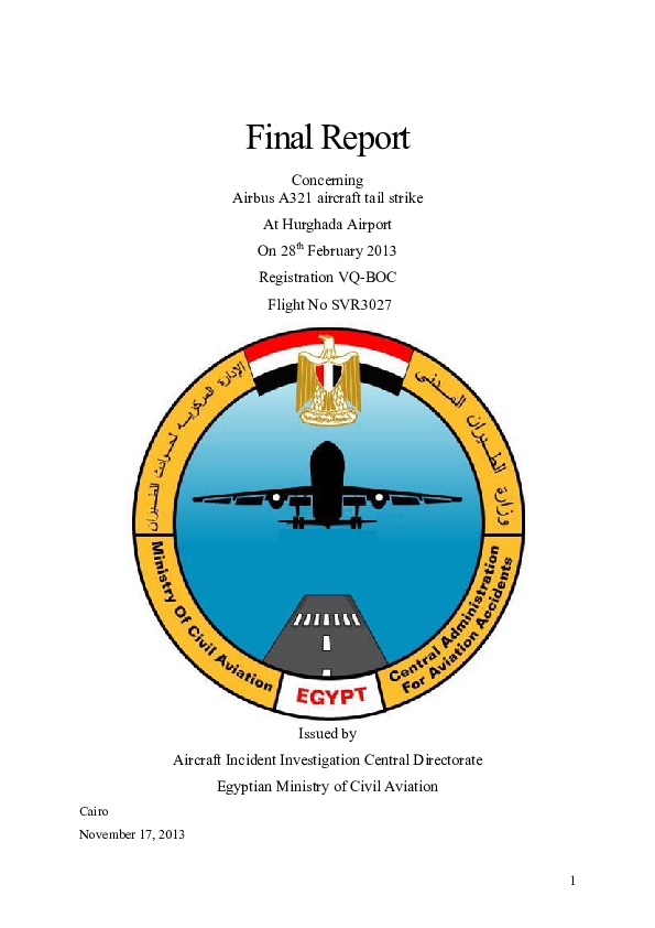 Final report - A321 tail strike, Hurghada, 28.02.2013