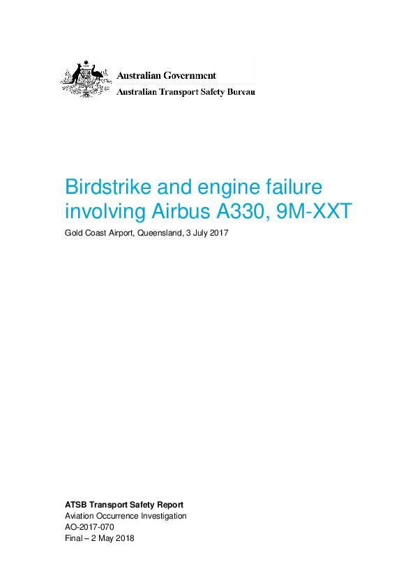 Final Report A333 (9M-XXT), vicinity Gold Coast Queensland Australia, 3 July 2017