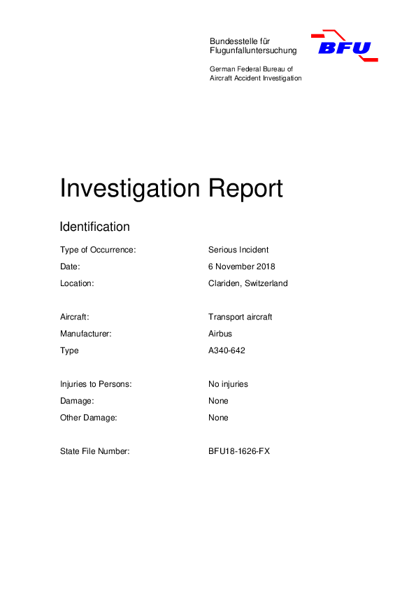 Final Report A346 (ZS-SNF), en-route, Clariden Switzerland, 6 November 2018
