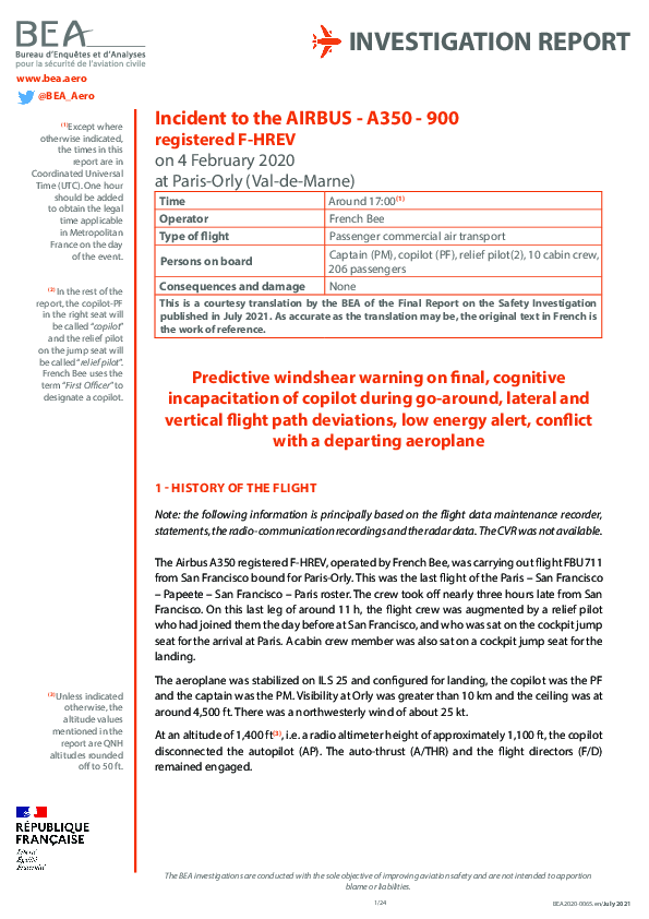 Final Report A359 (F-HREV) vicinity Paris Orly 4 February 2020