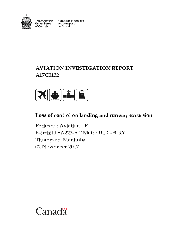 Final Report AIR A17C0132: SW4 (C-FLRY) Thompson MB Canada 2 Nov 2017