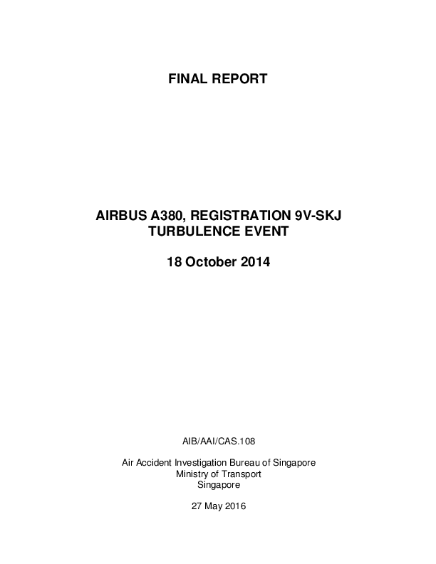 Final Report Airbus A380 ( 9V-SKJ) Turbulence Event Mumbai India 18 Oct 2014