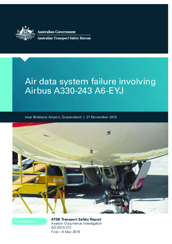 Final Report AO-2013-212 Air data system failure A332 Brisbane Australia 21 Nov 2013