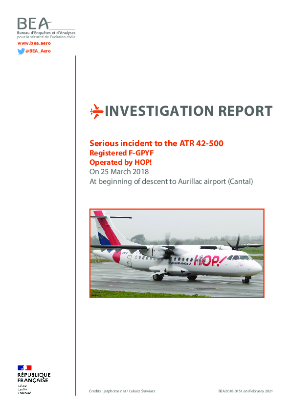 Final Report AT45 (F-GPYF) en-route north of Aurillac France, 25 March 2018