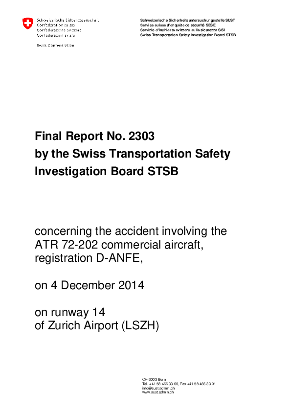 Final Report AT72 (D-ANFE), Zurich Switzerland, 4 Dec 2014