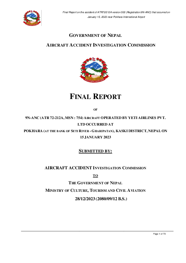 Final Report AT75 (9N-ANC), vicinity Pokhara Nepal, 15 January 2023