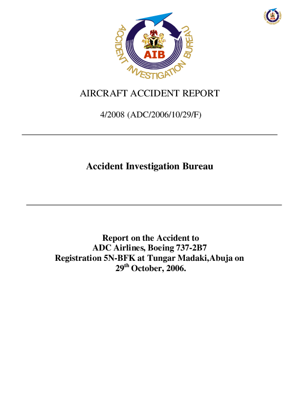 Final Report - B732 loss of control during take off, Abuja Nigeria, 29 Oct. 2006