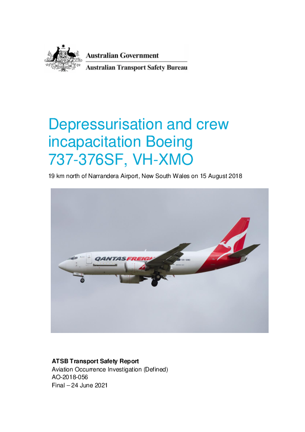 Final Report B733 (VH-XMO) enroute north of Narrandera NSW Australia, 15 Aug 2018