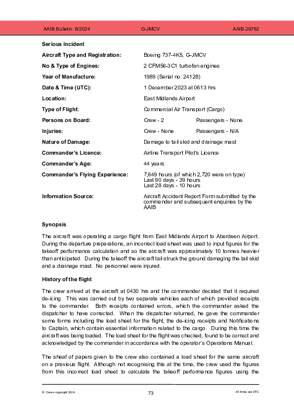 Final Report B734 (G-JMCV), East Midlands UK, 1 December 2023