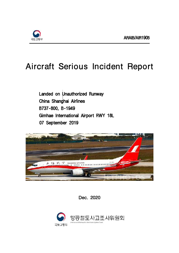 Final Report B738 (B-1949), Busan South Korea, 7 September 2019