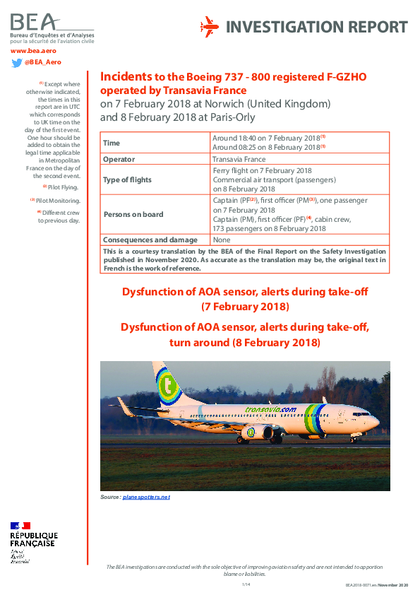 Final Report B738 (F-GZHO) vicinity Orly Paris France, 7 Feb 2018