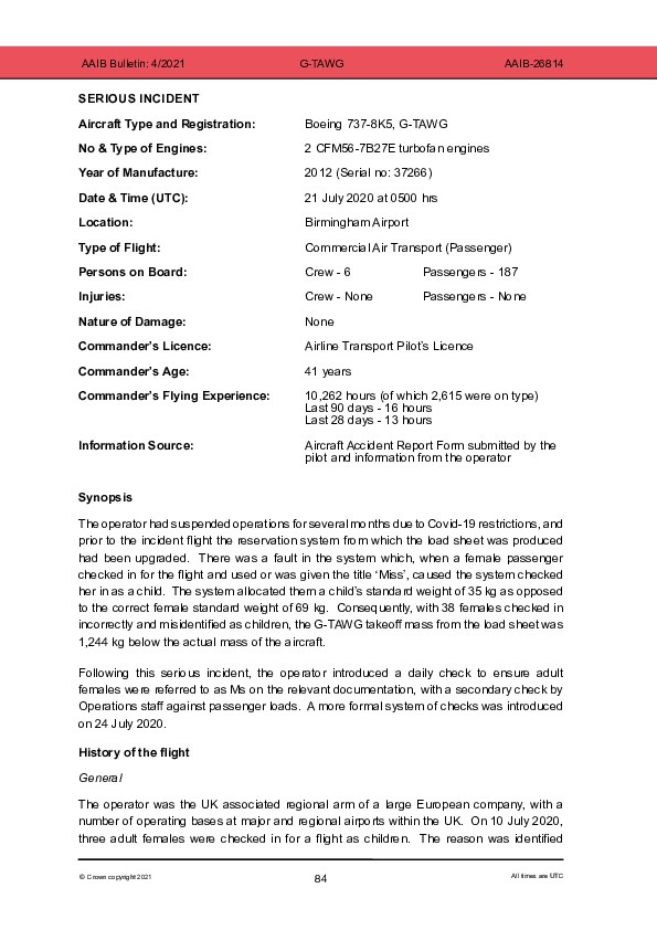 Final Report B738 (G-TAWG), Birmingham UK, 21 July 2020
