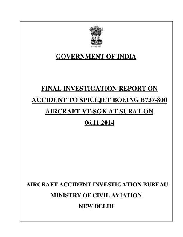 On 6 November 2014, a Boeing 737-800 taking off at night from Surat hit an object as it was approaching 80 knots and the take-off was immediately rejected. On return to the gate substantial damage was found to the left engine and a runway inspection found one dead buffalo and another live one. The runway was reopened after removal of the carcass but the live buffalo was not removed and was seen again by the runway the following day. The Investigation found a history of inadequate perimeter fencing and inadequate runway inspection practices at the airport.