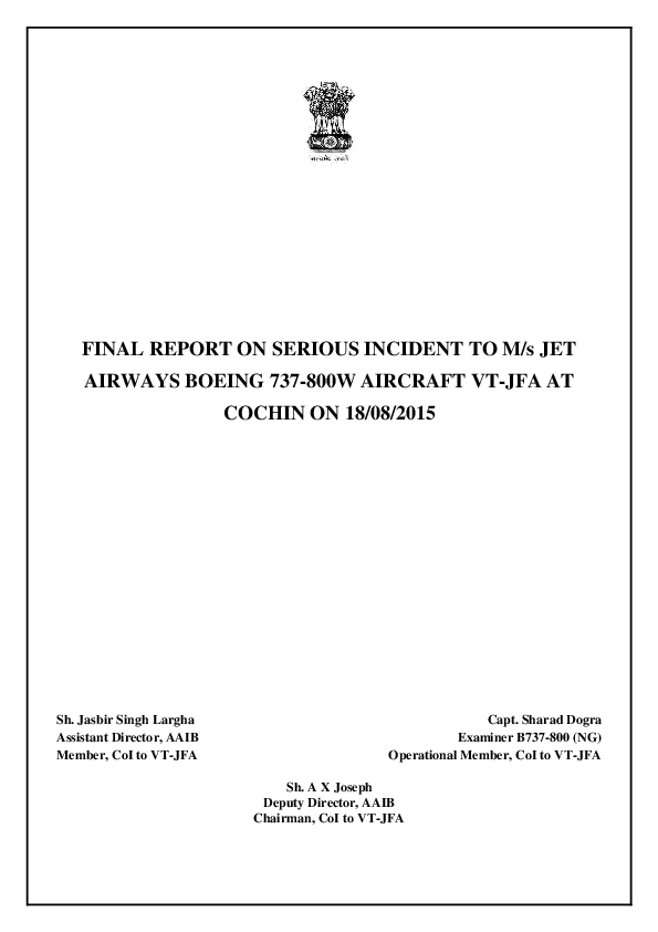 Final Report B738 (VT-JFA) vicinity Trivandrum India, 18 Aug 2015