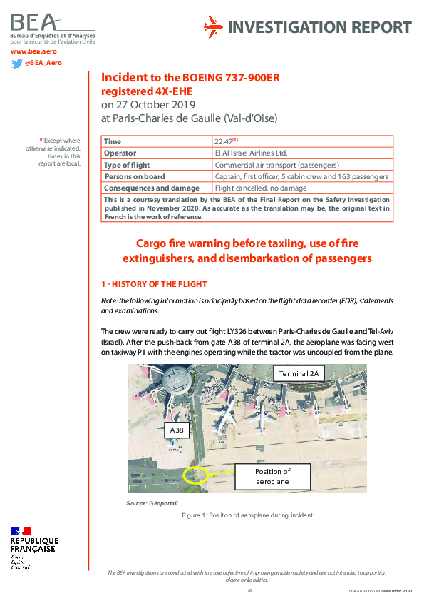 Final Report B739 (4X-EHE) Paris CDG France, 27 October 2019