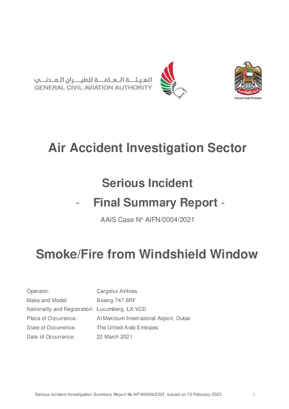 Final Report B748 (LX-VCD), en-route Persian Gulf, 22 March 2021