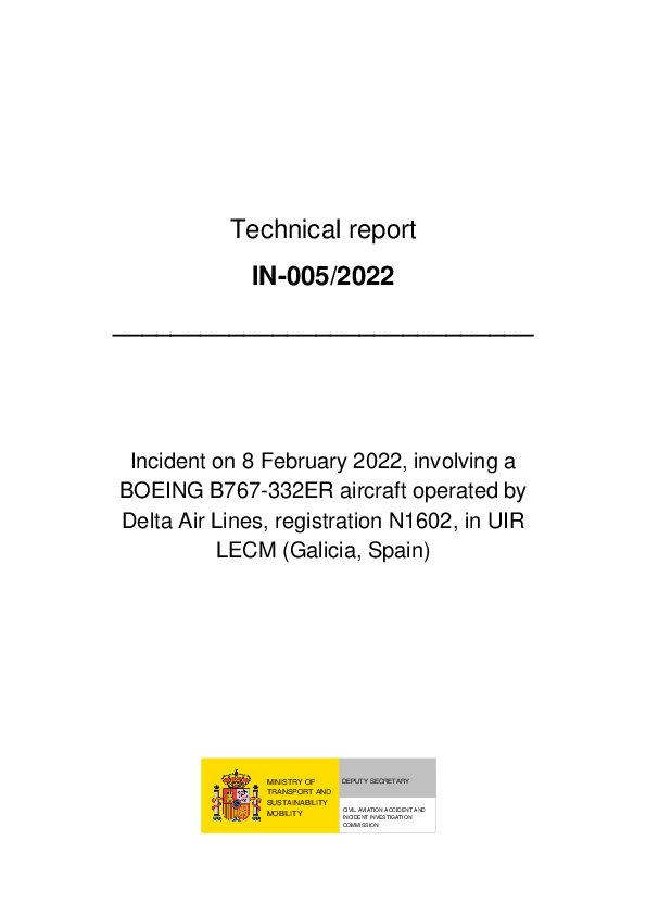 Final Report B763 (N1602), enroute, Galicia Spain, 8 February 2022