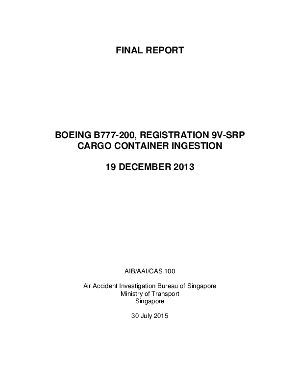 Final Report B772 Cargo Container Ingestion Singapore 2013