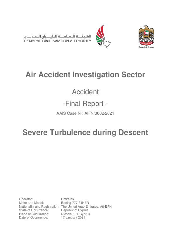 Final Report B773 (A6-EPN) en-route west of Haifa Israel, 17 January 2021