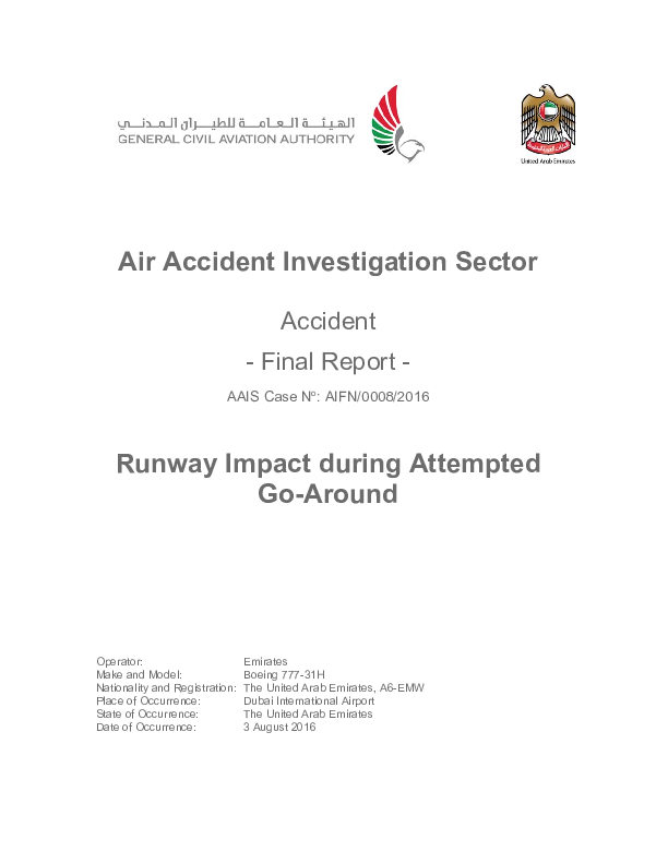 Final Report B773 Dubai UAE Runway Impact Attempted GA, 3 Aug 2016