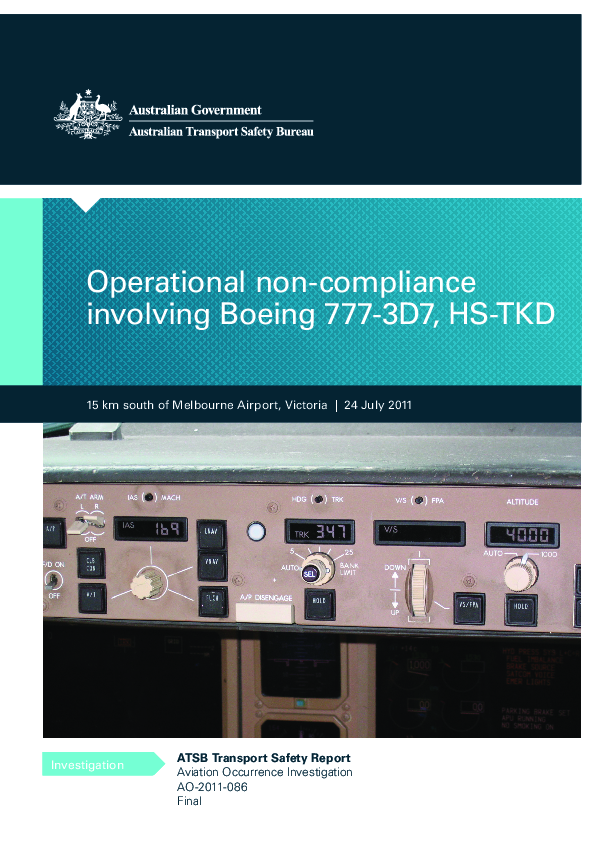 Final Report, B773 operational non-compliance and CFIT risk, Melbourne Australia, 24 July 2011