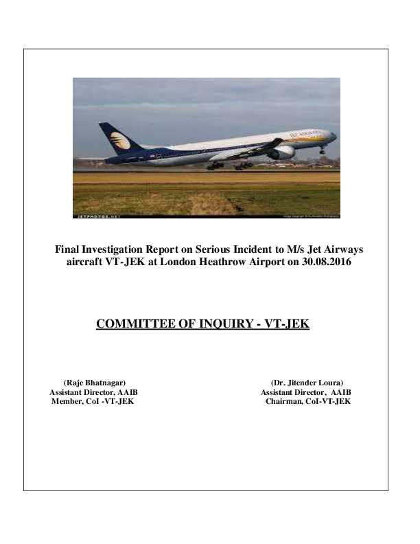 Final Report B773 (VT-JEK), London Heathrow UK, 30 Aug 2016