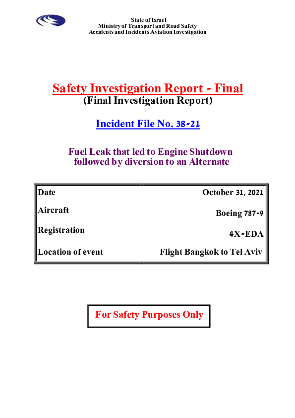 Final Report B789 (4X-EDA), en-route west of Mangaluru India, 31 October 2021