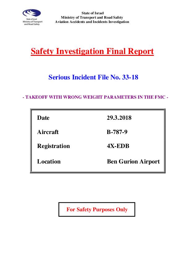 Final Report B789 (4X-EDB), Tel Aviv Israel, 29 March 2018