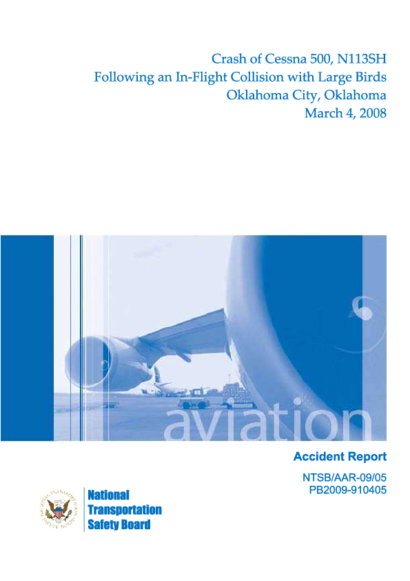 Final Report Crash of Cessna 500, N113SH, In Flight Collision with Large Birds Oklahoma City, USA